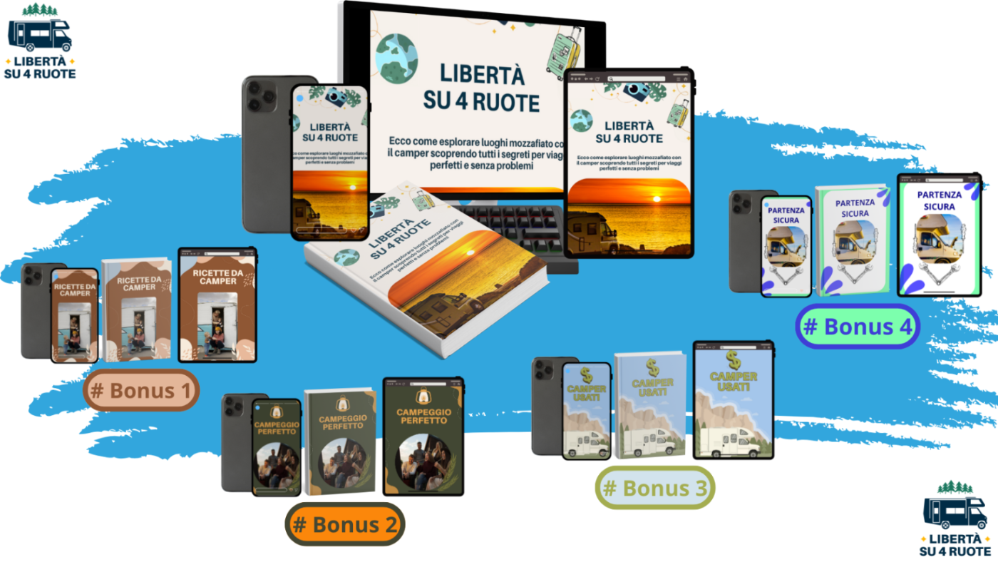 Quattro bonus in omaggio con tecniche, trucchi e segreti per vivere la fantastica esperienza della vita in camper al massimo!